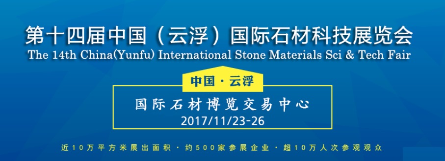 第十四屆中國(云浮)國際石材科技展覽會暨第八屆中國(云浮)石文化節將于2017年11月23日至26日在云浮國際石材博覽交易中心舉行。本屆展會展覽面積10萬平方米,預計本屆進場參觀人數將超過10萬人次。屆時展會將充分展示國內外石材荒料、天然石、大板和人造石制品、石工藝制品、石材加工機械設備等。